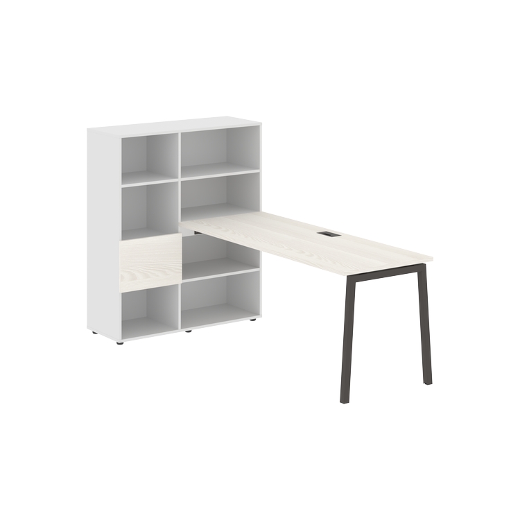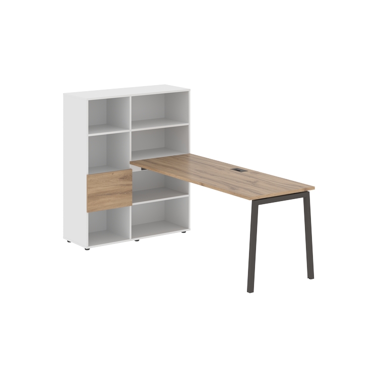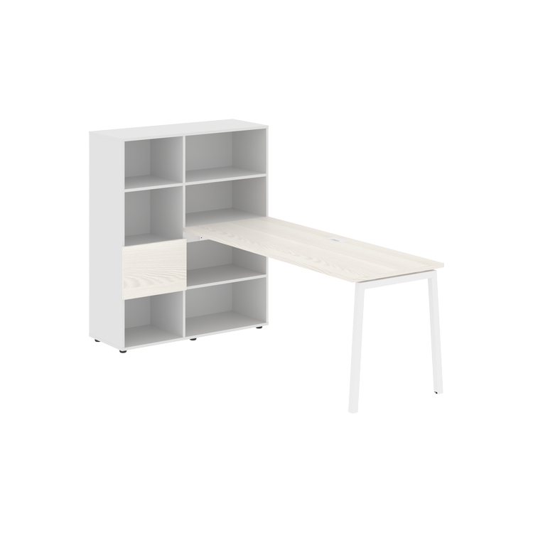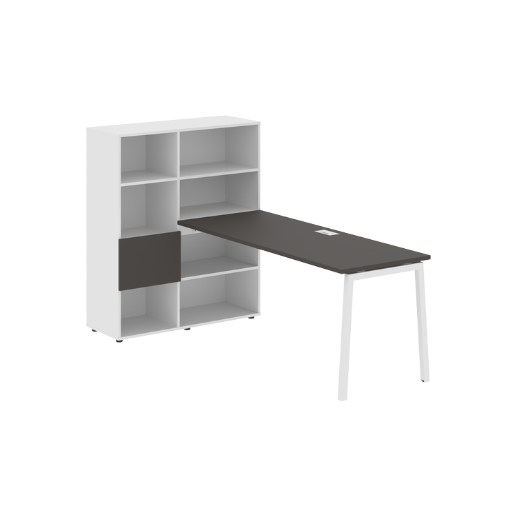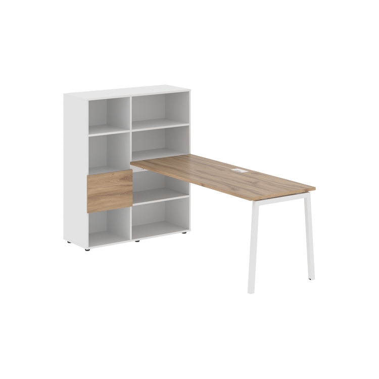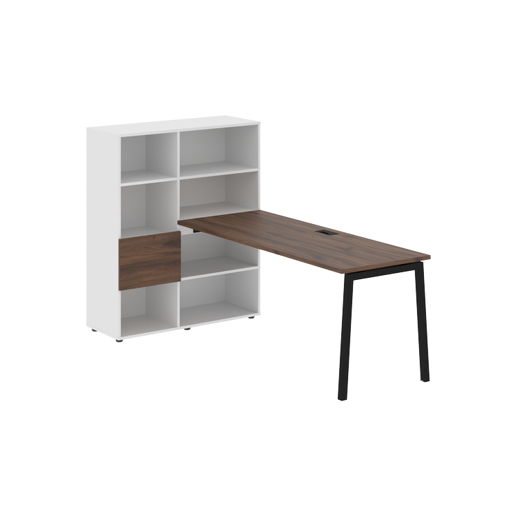 Каркасы стеллажей полностью из ЛДСП т.18 мм с кромками ПВХ т.2 и 0,45 мм, задняя стенка из ЛДСП. Комплектуется малой дверью в цвет столешницы и регулируемыми опорами h= 27 мм.