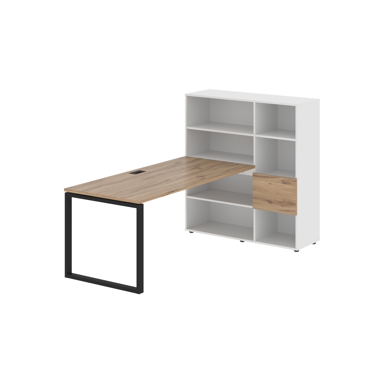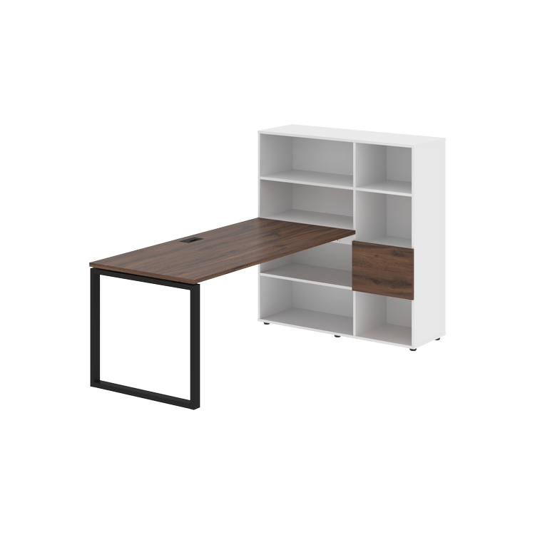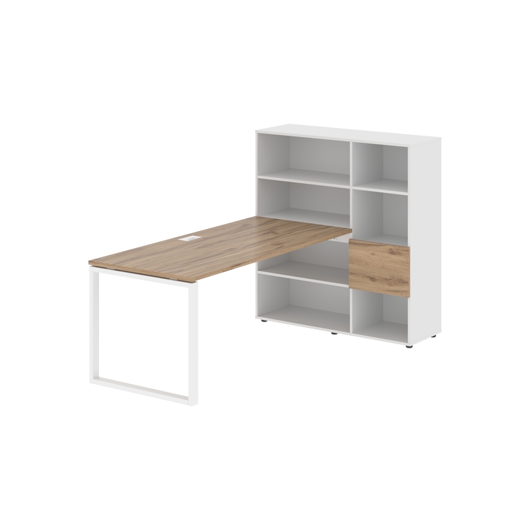 Каркасы стеллажей полностью из ЛДСП т.18 мм с кромками ПВХ т.2 и 0,45 мм, задняя стенка из ЛДСП. Комплектуется малой дверью в цвет столешницы и регулируемыми опорами h= 27 мм.