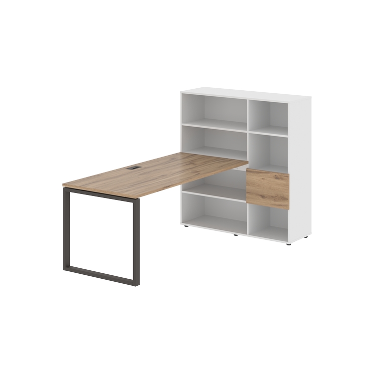 Столешница глубиной 800 мм, комплектуется регулируемой опорой О-образной формы из профиля трубы 60х30, комплектом телескопических траверс и двумя кронштейнами для крепления к стеллажу.