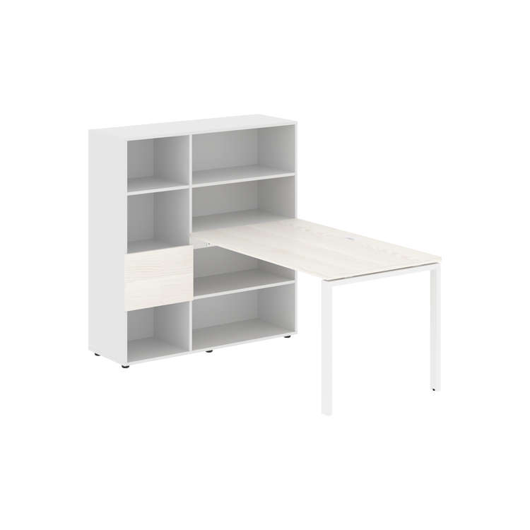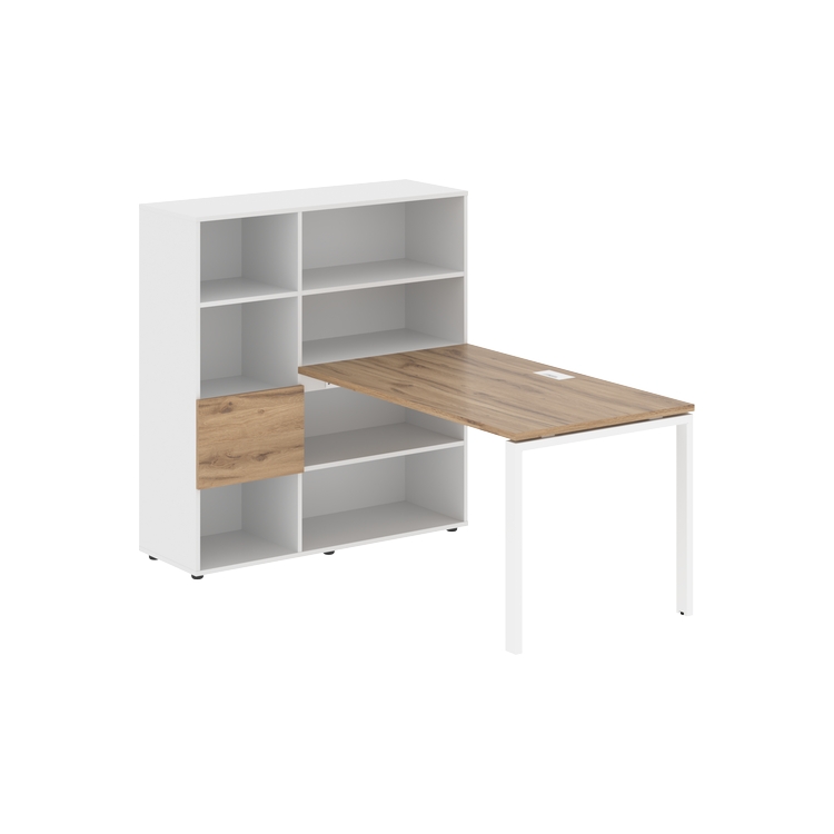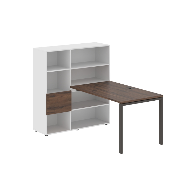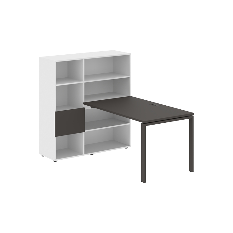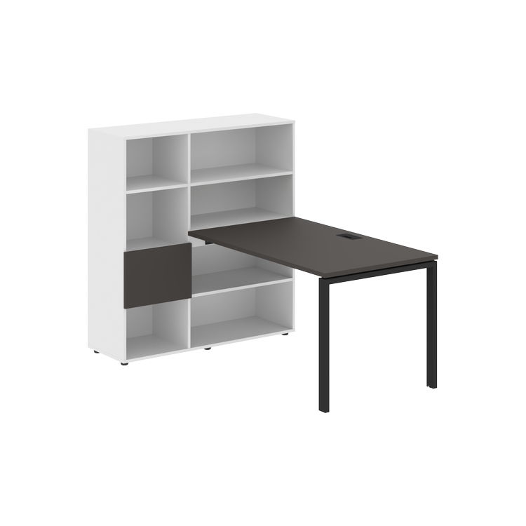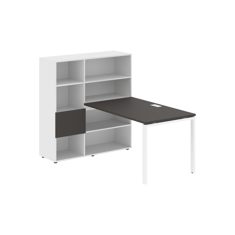 Столешница глубиной 800 мм, комплектуется регулируемой опорой П-образной формы из профиля трубы 60х30, комплектом телескопических траверс и двумя кронштейнами для крепления к стеллажу.
