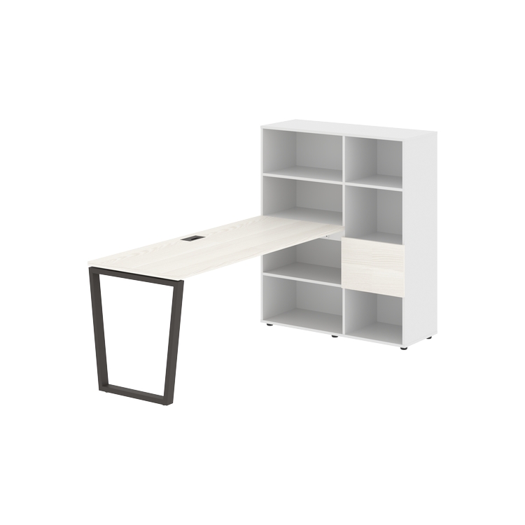 Столешница глубиной 670 мм, комплектуется регулируемой опорой V-образной формы из профиля трубы 60х30, комплектом телескопических траверс и двумя кронштейнами для крепления к стеллажу.