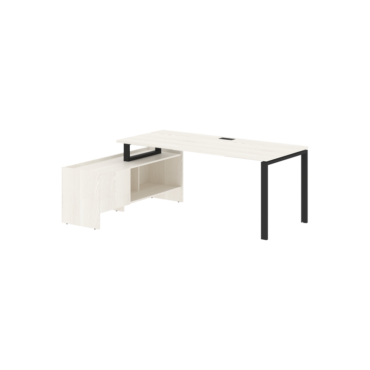 Столешница глубиной 800 мм из ЛДСП т.25 мм с кромками ПВХ по периметру т.2 мм. Комплектуется металлическим кабель-каналом габаритом 160х80х25 мм.