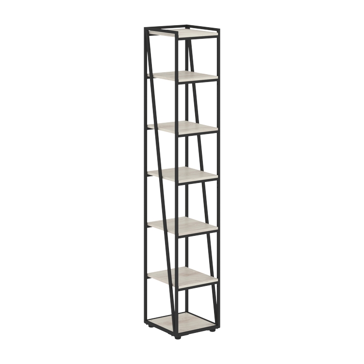 Стеллаж узкий открытый из профиля трубы 20х20мм, черного цвета. Комплектуется регулируемыми опорами и полками из ЛДСП т.18мм с кромками ABS т.0,45мм. Полки в каркасах с возможностью переустановки.