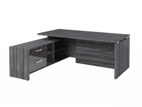 Столешница, бок стола и бок тумбы выполнены из ЛДСП толщиной 38 мм. Цвет - "Древесина Графит". Кромка 2 мм.
