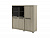 Слева одна дверь глухая. Справа в двух секциях в нижней части - двери ЛДСП, сверху - стеклянные двери.
