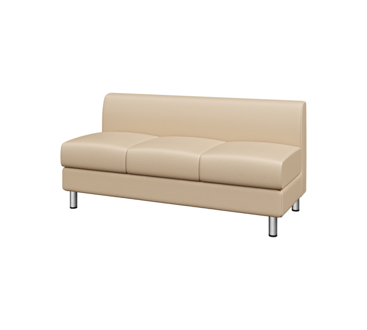 Ширина 3-местного модуля всего 1,5 метра. Он прекрасное подойдет для интерьеров небольших помещений. Отсутствие подлокотников не ограничивает посадочное место, обеспечивает просторное и комфортное размещение для гостей и клиентов офиса.
